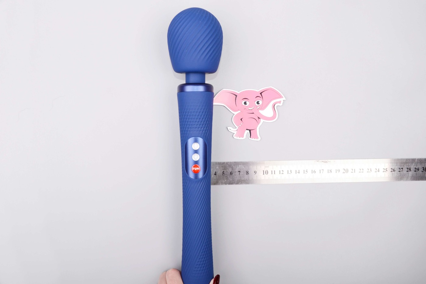 Capul de masaj cu un cap rotund arată ca un microfon mare. Mânerul ergonomic bine conturat este ușor de ținut în mână. Gâtul flexibil facilitează utilizarea ajutorului în orice poziție. Sub gât, la începutul mânerului, veți găsi un inel decorativ care strălucește frumos și conferă jucăriei o notă de lux. Suprafața din silicon este decorată cu caneluri fine care arată elegant. În general, capul de masaj arată modern și invită la joc erotic.