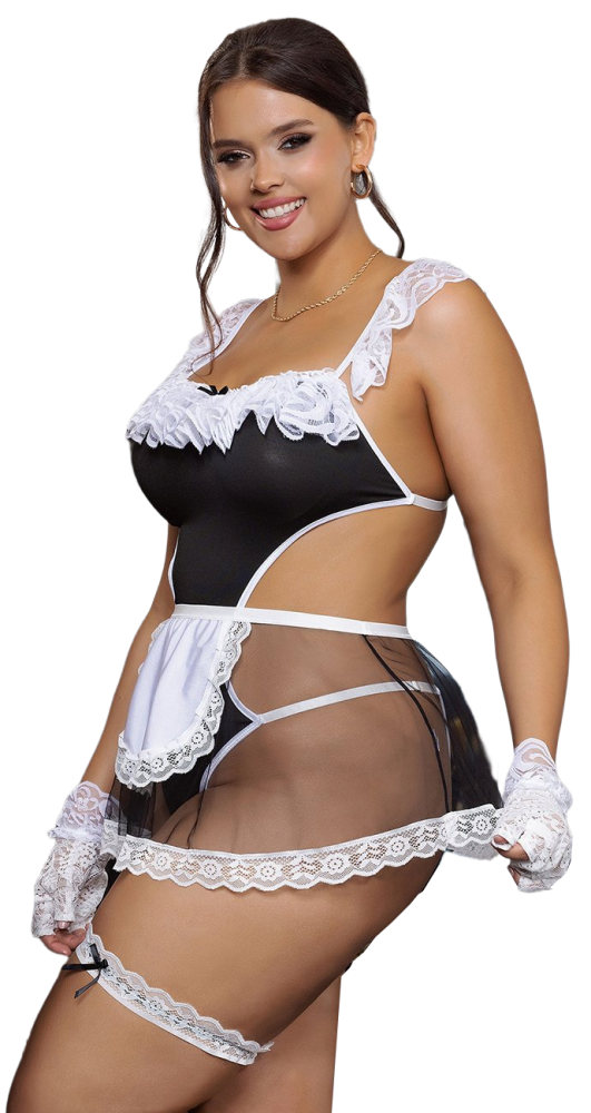 Costum de servitoare sexy din dantela, XXXL–XXXXL