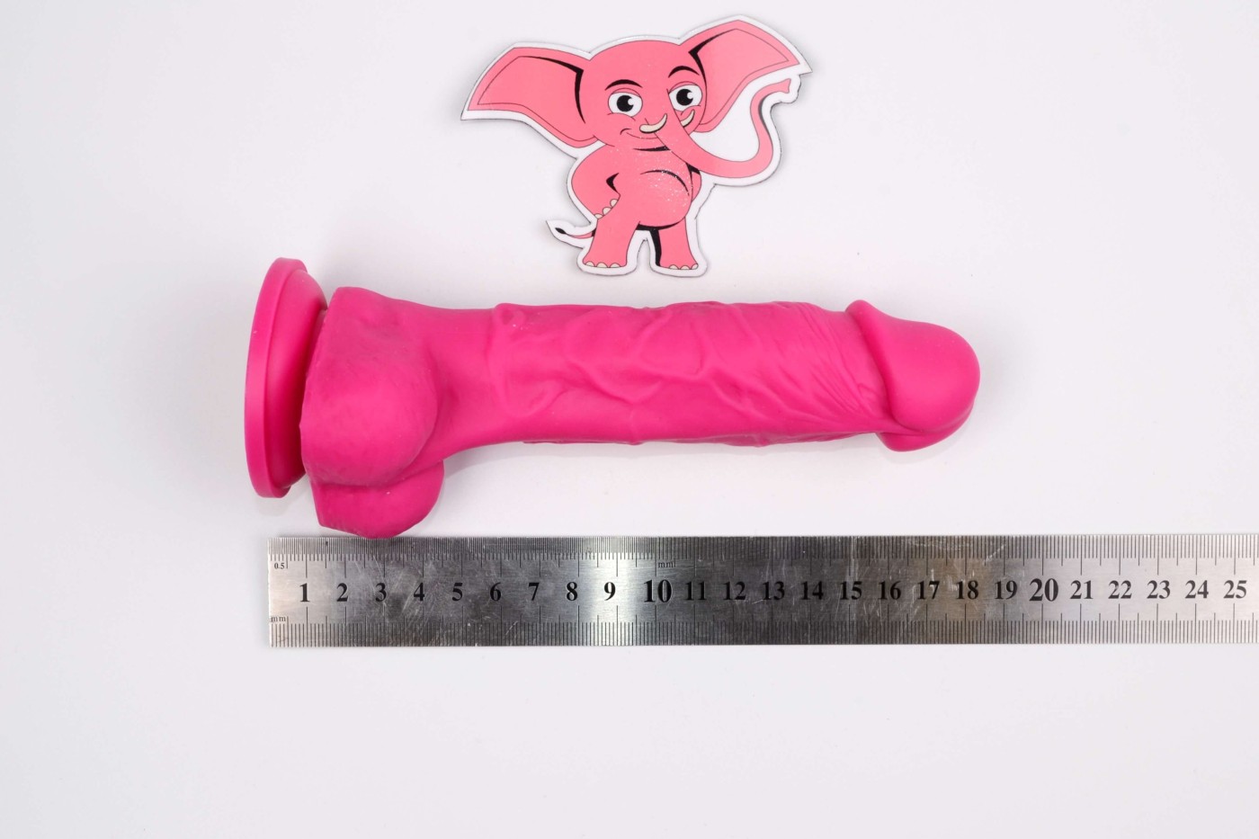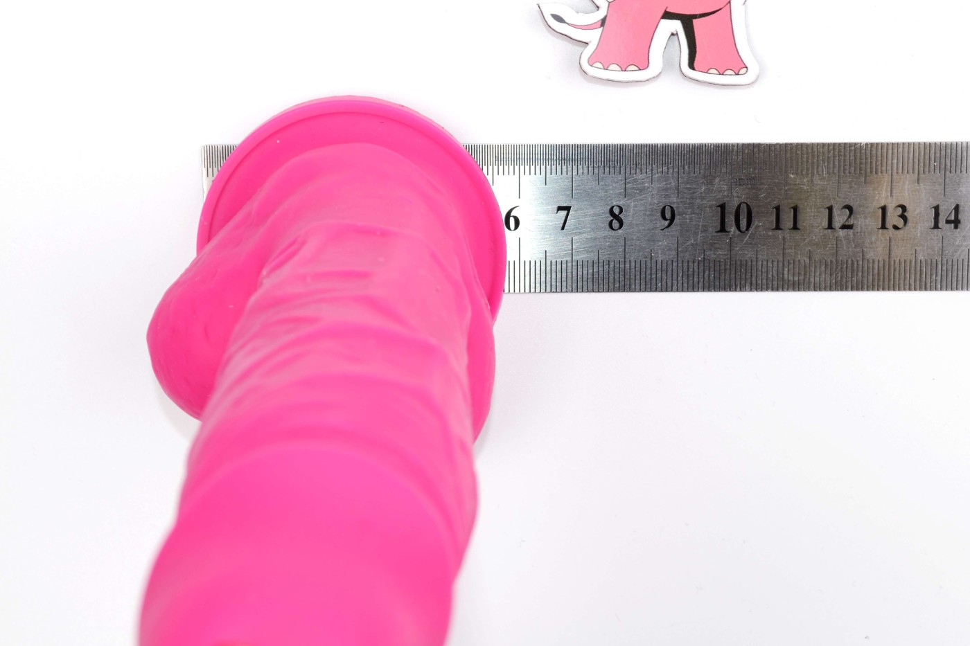 Dildo-ul cu ventuză arată aproape ca un penis adevărat, dar pentru culoarea violet, aproape că nu l-am putea deosebi de cel real. Nu are vene elaborate, proeminente sau bile încrețite. Am fost mulțumiți de flexibilitatea și dimensiunile sale mai mici, pe care chiar și un începător timid le va aprecia. Se ține bine în mână când joacă.