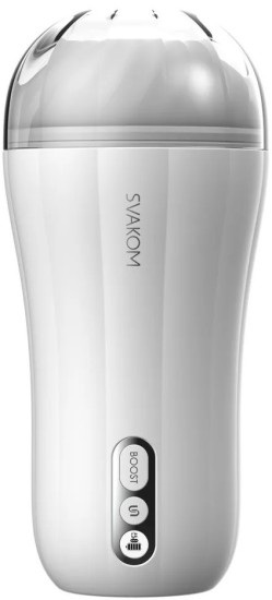 Masturbatorul elegant Svakom Robin răsfață penisul cu 5 programe de vibrații și o structură internă zimțată. Datorită butonului special BOOST, jucăria va vibra la maxim în orice moment pentru a vă spori orgasmul. Bărbații vor ajunge astfel la vârful plăcerii cu un simplu click. Modul de vibrație selectat, inclusiv starea bateriei, poate fi monitorizat pe micul afișaj digital de sub butoanele de control.