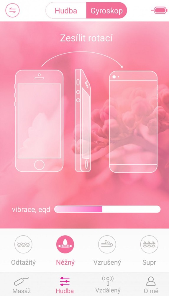 Vibratorul Smart Hackbuteer este pornit prin apăsarea ambelor butoane timp de aproximativ 3 secunde. Lumina led va începe să clipească, declanșând o căutare automată prin bluetooth. Pentru a-l opri complet, astfel încât butoanele să nu mai funcționeze deloc și să fie blocate, țineți din nou apăsate lung ambele butoane în același timp, acest lucru va deconecta automat și împerecherea cu telefonul mobil. Dacă doriți să îl dezactivați pentru o perioadă scurtă de timp, apăsați scurt doar butonul de jos. Apăsați-l din nou scurt pentru a-l porni. Vă puteți da seama că este pornit prin clipirea indicatoarelor luminoase, vibratorul rămâne împerecheat cu telefonul în acest moment. Vibrațiile individuale se comută doar prin apăsarea butonului de sus, de la primul la al doisprezecelea. Butonul de jos dezactivează complet vibrațiile, astfel încât butonul de sus pornește întotdeauna de la programul numărul 1. Pentru a descărca aplicația, trebuie doar să scanați codul QR de pe cutia vibratorului. Acest link, "http://app.cst2002.com/", va descărca aplicația dacă codul nu funcționează pentru dvs. și puteți alege opțiunea android sau iphone aici. 2. Porniți bluetooth-ul de pe telefon și, de asemenea, porniți vibratorul. Navigați la aplicație. Faceți clic pe pictograma de împerechere din dreapta sus, selectați dispozitivul dvs. și așteptați. După un timp, totul se va împerechea. Ne place că pentru toate gadgeturile BOOM ai 1 aceeași aplicație (cu excepția HiBall).