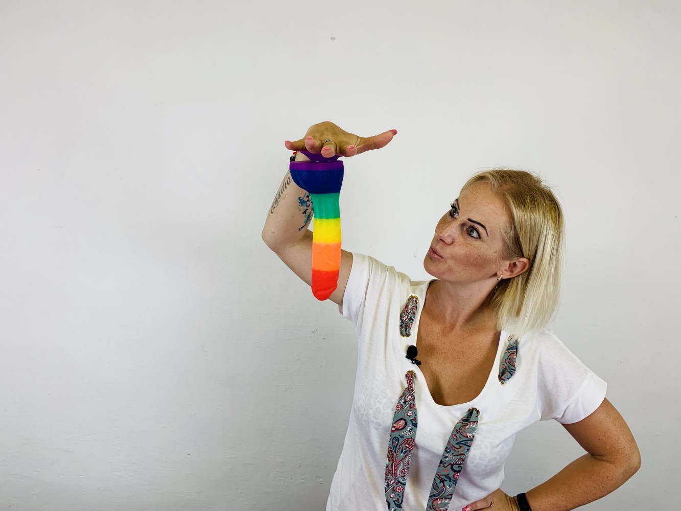 Culoarea emblematică a curcubeului LGBT arată jucăuș și îndrăzneț. Lasă-te cuprins de un vârtej de pasiune și depășește-ți puțin limitele.
