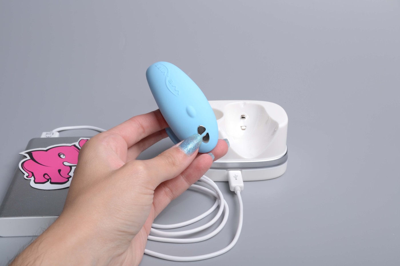 Pentru a prelungi durata de viață a bateriei, vă recomandăm să încărcați We-Vibe Chorus la maxim înainte de utilizare. Pentru a încărca, introduceți vibratorul în stația de andocare cu plăcuțele magnetice atingând conectorul magnetic din suport. Apoi, acoperiți vibratorul în stația de andocare cu capacul. În partea din spate veți găsi o gaură pentru introducerea conectorului, pe care îl conectați la o priză electrică cu ajutorul unui cablu USB prin intermediul adaptorului de încărcare. LED-ul clipește în timpul încărcării. Când este parțial încărcat, LED-ul rămâne aprins. Dar numai atunci când este complet încărcat, lumina se stinge. Încărcarea inițială ne-a luat aproximativ 6 ore. Iar We-Vibe Chorus durează apoi aproximativ 2 ore. Telecomanda este alimentată de o baterie de tip buton CR 2032. Puteți să o schimbați cu ochii închiși. Trebuie doar să apăsați cu unghia în locașul din partea superioară a telecomenzii. Această adâncitură este făcută din plastic pe o parte și din silicon pe cealaltă, așa că trebuie să apăsați puțin mai tare pe peretele de plastic, care apoi se desprinde împreună cu întregul panou de comandă. Apoi, înlocuiți cu grijă bateria și fixați la loc întregul panou.